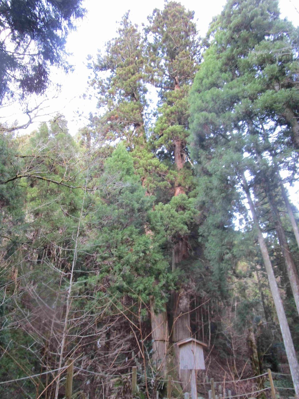 見上げると首が痛い。近づくと幹回りも太く3本が寄り添い大きいね。久しぶりの驚愕の巨樹であった。(Kazu)